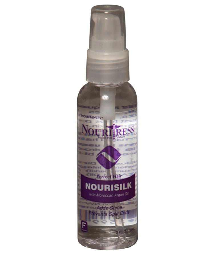 NouriSilk is your Go To Blow Dry, Heat Protectant Serum used especially for blow drying hair. Great for relaxed or natural hair, NouriSilk has a unique blend of Moroccan Argan Oil, Shea oil, Omega 6 antioxidants, Vitamin E and Macadamia Seed Oil that helps protect hair from the heat of straightening irons and adds shine to the hair. This lightweight serum is great for all hair types.