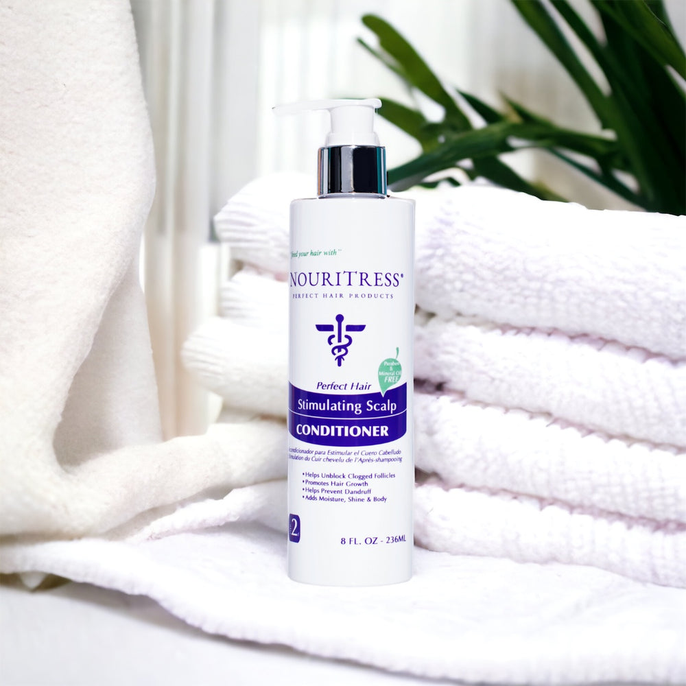 Invest in the health and beauty of your hair with NouriTress Stimulating Scalp Conditioner. NouriTress Stimulating Scalp Conditioner is here to transform your hair care routine. Formulated with Peppermint and Argan Oil this conditioner deeply moisturizes, strengthens, reduce split ends and breakage all while eliminating dryness and flakiness.