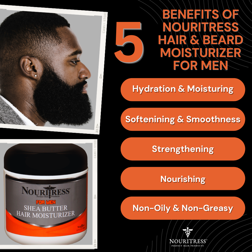 NouriTress Shea Butter Hair & Beard Moisturizer FOR MEN is a non-oily, light weight, scalp & beard cream with African Shea Butter. This hair and beard cream softens, adds moisture and sheen to the hair, scalp or beard. This product is great for dry, brittle hair and beard. Recommended for ethnic hair.