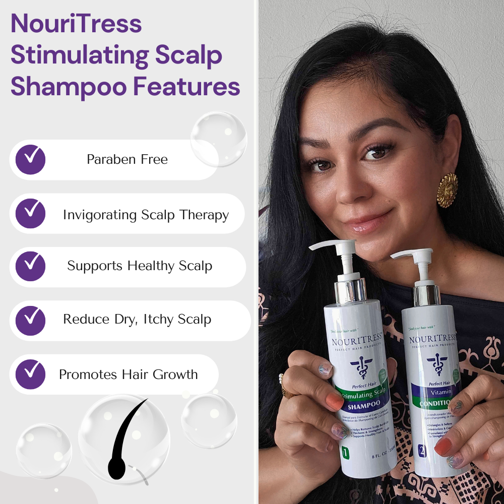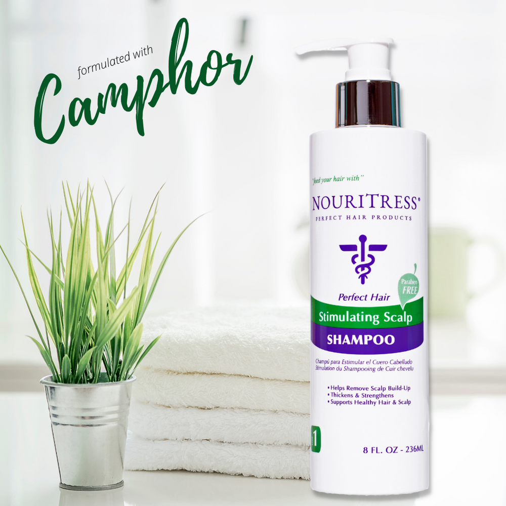 Revitalize your scalp and rejuvenate your hair with NouriTress Stimulating Scalp Shampoo. Expertly formulated with a powerful blend of Camphor, Tea Tree, and Peppermint oil, this invigorating shampoo deeply cleanses and refreshes the scalp, promoting a healthy environment for hair growth. Camphor's soothing properties calm irritation, while Tea Tree oil's natural antiseptic qualities help combat dandruff and flakiness. Peppermint oil stimulates circulation, leaving your scalp feeling cool and refreshed.